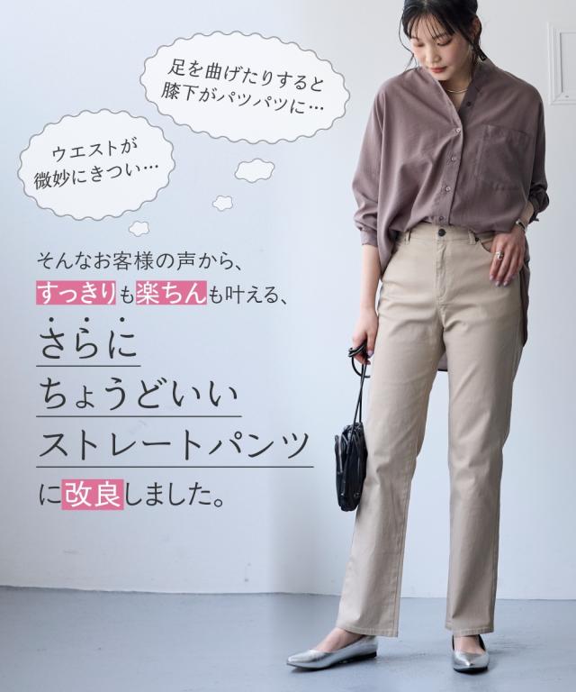 ストレートパンツ レディース すごのび ストレッチ ツイル ストレート パンツ ゆったり太もも 股下73cm 秋 美脚 ボトムス ズボン | L/LL/3L | ニッセン nissen