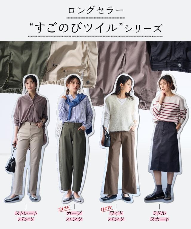 ストレートパンツ レディース すごのび ストレッチ ツイル ストレート パンツ ゆったり太もも 股下73cm 秋 美脚 ボトムス ズボン | 8L/10L | ニッセン nissen
