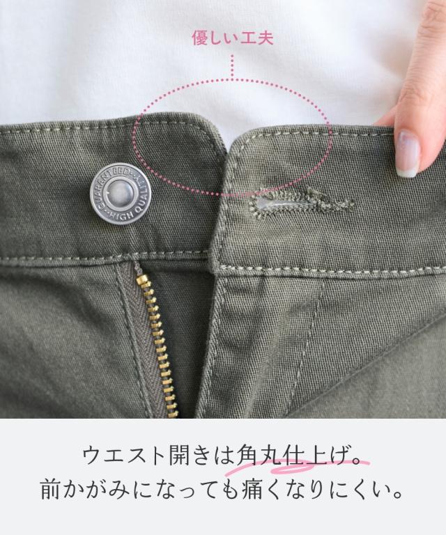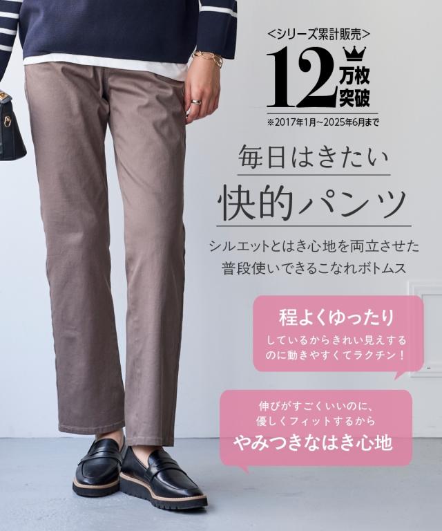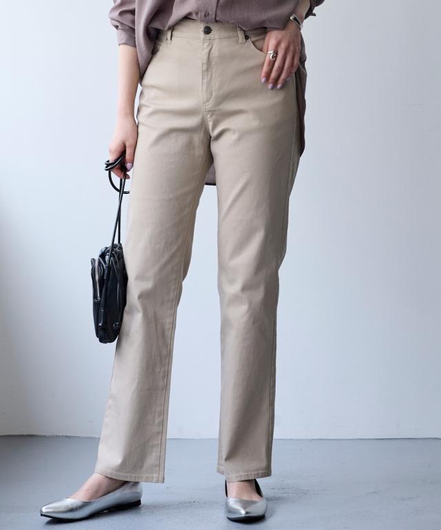 日常使いしたいベーシックなアイテムだからこそ、はき心地の良さで選びたい。ONでもOFFでもオールシーズン使える大人気ボトムを是非一度お楽しみください ■デザイン弊社の強みであるパターンにもこだわりが!!!股下に隙間ができにくい特殊なライン設計だからしっかりはき込めて脚の動きがスムーズです。ウエスト開きの角に丸みがあり、前かがみになってもラクちん。シンプルデザインで、すっきり見えるストレートシルエット。しっかり穿き込めるから脚長に見えるライン設計前後に便利なポケット付き足の可動域が広がり快適な動きやすさへ穿きやすさにこだわりヒップはゆったり設計・太ももはゆるっとゆったり設計■素材ヨコにグンと伸びるストレッチツイル素材で、はき心地がラク☆程よいハリ感の生地で着回しできる優秀パンツ■コーディネイトトップスを選ばず着回し自在