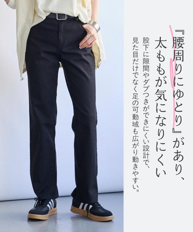 すごのびストレッチツイルストレートパンツ(ゆったり太もも)(股下73cm)