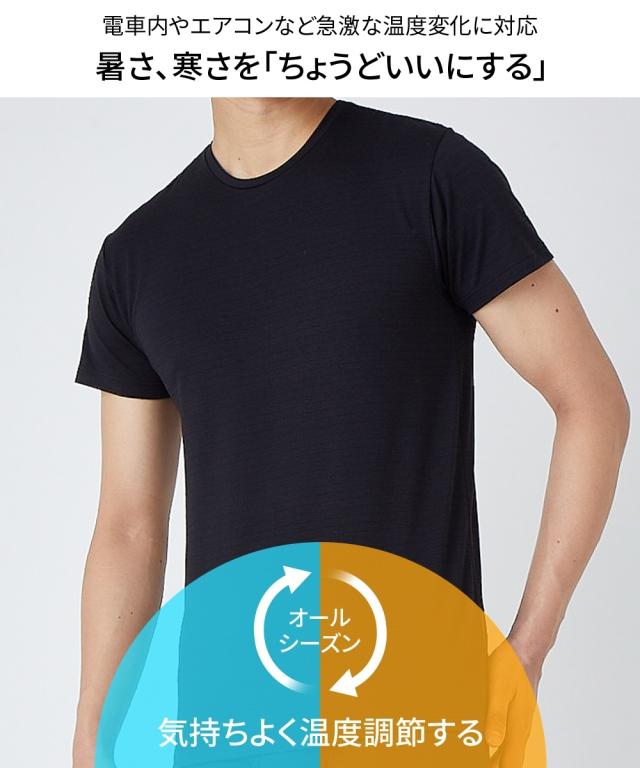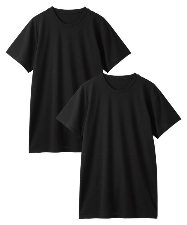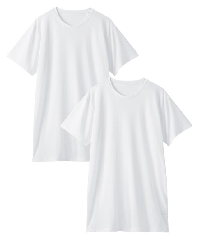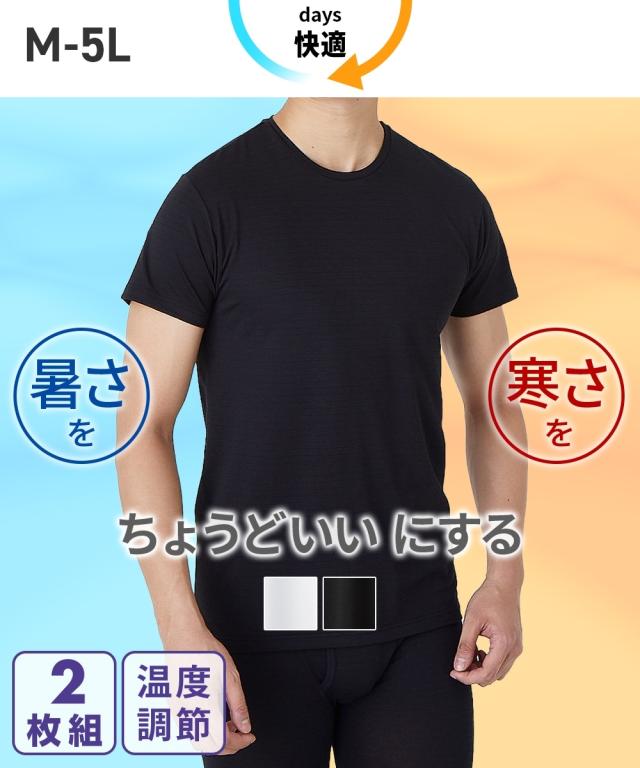 インナー シャツ 半袖 メンズ 温度コントロール綿混 ストレッチ クルーネック 2枚組 春 夏 秋 冬 男性 肌着 下着 | M/L/LL | ニッセン nissen