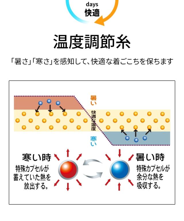 温度コントロール綿混ストレッチクルーネック半袖インナー2枚組〜暑い時も寒い時も温度調節できる!電車内やエアコンなど急激な温度変化が気になることがありませんか気温に左右されない、人体にちょうどいい温度になれる、そんな時におすすめのインナーです。<特徴>■温度変化に対応・・暑い時・・熱を吸収して温度を下げます。・・寒い時・・熱を放出して温度を上げます■薄手で着ぶくれしにくい■ストレッチ素材伸縮性があり、体の動きにフィットします。■セット組毎日着用するものだから、洗い替えに便利なセット組でお届けします。同素材の長袖インナー、タイツも販売しています。
