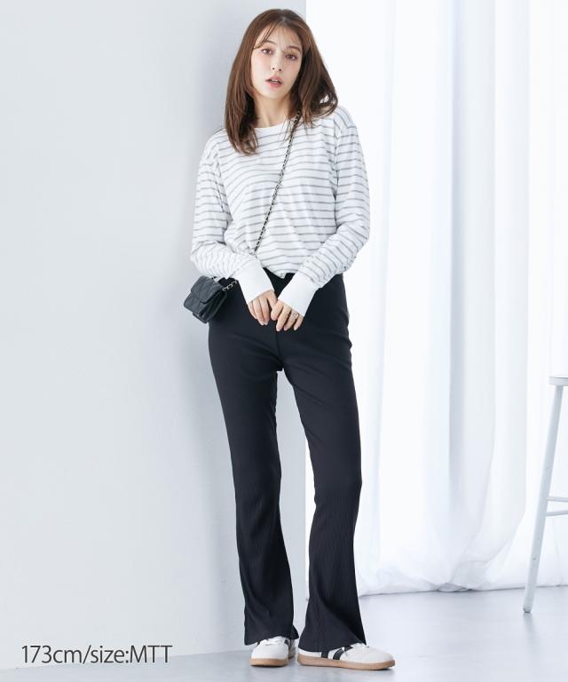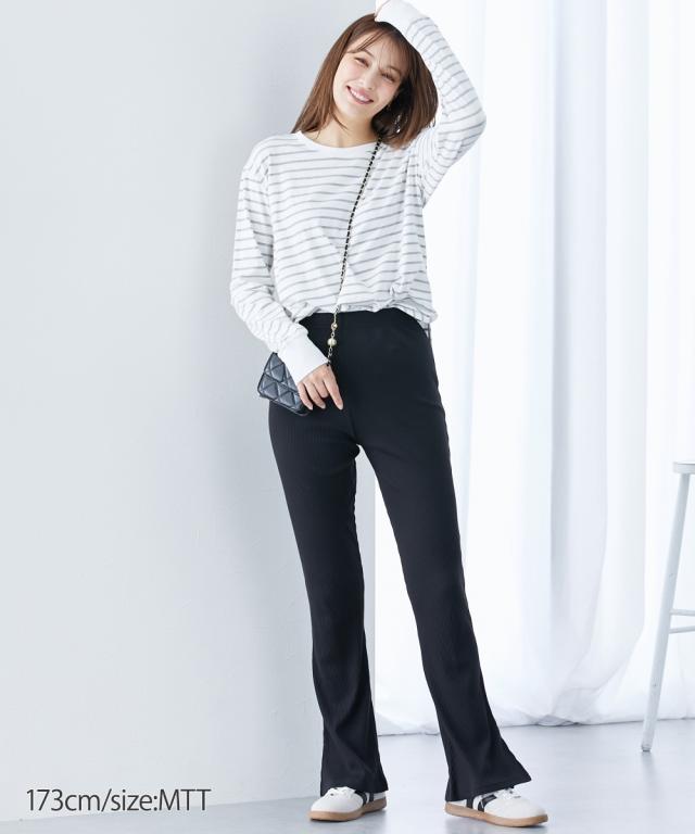 フレアパンツ ブーツカットパンツ トールサイズ レディース 高身長 フレアシルエットリブ カットソー レギンス 春 夏 秋 冬 | M/L | ニッセン nissen