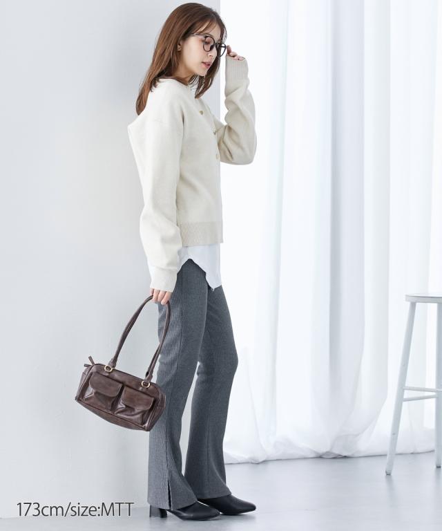 【高身長な方向け】足長効果絶大 着心地らくちんのリブカットソー素材のレギンスパンツ■デザイン裾に向かって広がるセミフレアシルエットで脚長効果も!サイドスリットが着こなしに抜け感を与えてくれるレギンスパンツ。このままでも、ワンピースやチュニックに合わせても可愛い ■素材伸縮性のあるリブカットソー素材を使用。ロングシーズン着用できます。薄すぎないのでボディラインが響きにくいのも魅力。ウエストはゴム仕様なのでストレスフリー。ルームウェアやワンマイルウェアにもぴったり。■おすすめのスタイリングオーバーサイズのトップスに合わせてカジュアルに着こなすのも、ロングワンピースとのレイヤードコーデもおすすめ!