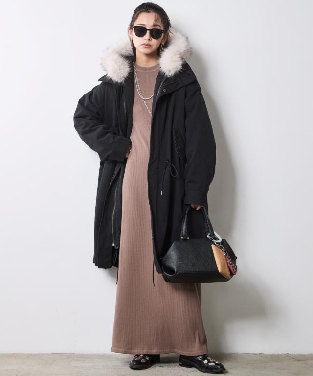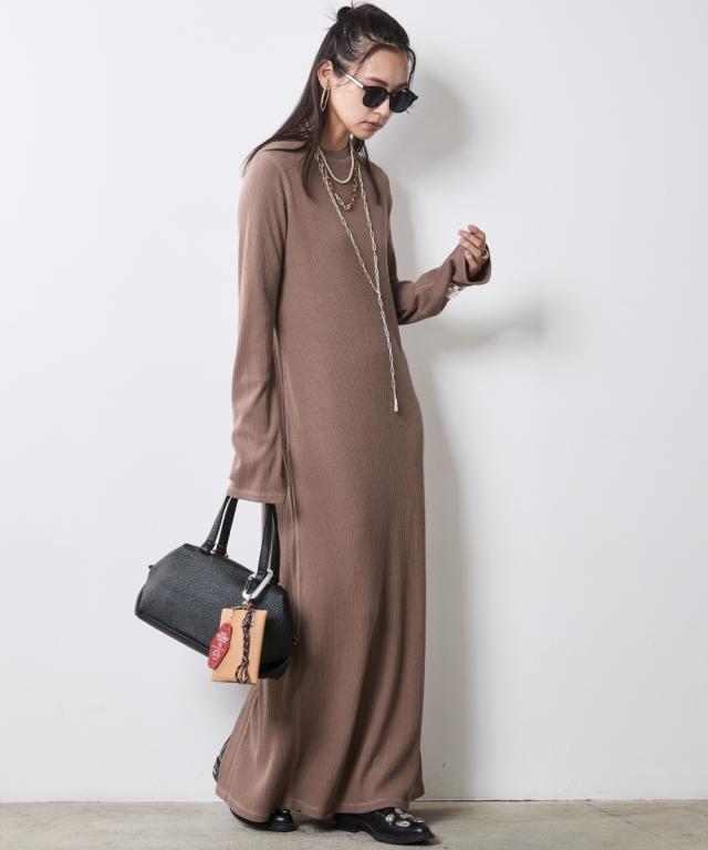 シンプルなのに様になる、大人のリラクシーワンピース。■デザイン1枚でさらっと着られるのに、手抜きに見えない。計算されたシルエットと素材感でカジュアルスタイルを格上げします。スッキリと縦ラインを強調するIラインシルエットと身体のラインを拾い過ぎない程よいゆとりが魅力のワンピース。シンプルな中にも女性らしさを引き立てます。■素材肌触りが良くソフトな風合いのテレコ素材を使用。■おすすめのスタイリングさらっと1枚でシンプルに着るのはもちろん、フェイクファーベストやシャツやスウェット等をレイヤードしたスタイルもオススメです。
