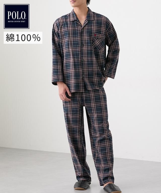 パジャマ メンズ 綿100% 前開き チェック柄 POLO BCS 春 秋 冬 部屋着 | M/L/LL | ニッセン nissen
