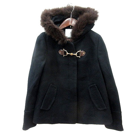 【中古】エフデ ef-de コート ショート 総裏地 ウール フォックスファー 7 S 黒 ブラック /MN レディース