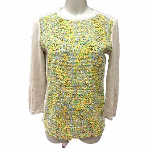 【中古】ミモモーダ MIMO MODA ニット カットソー 切替 総柄 長袖 40 L ベージュ /YK レディース