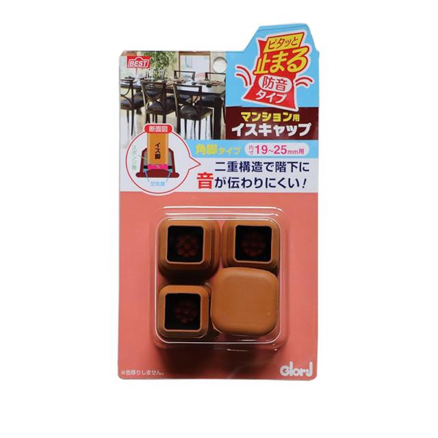 ピタッと止まる イスキャップ 角 19〜25mm 4個入 日本製 10-445 [椅子脚カバー イス脚キャップ 床保護 防音 Groly BEST]