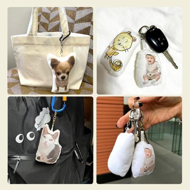 オーダーメイド クッションキーホルダー8cm 10cmメモリアルグッズ ペットオリジナル 写真入り プレゼント ギフト祖母 両親出産記念 コラージュ【海外中国発送】