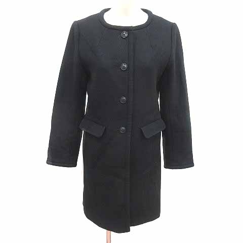 【中古】イエナ IENA ノーカラーコート 総裏地 ウール 38 M 黒 ブラック /YK レディース