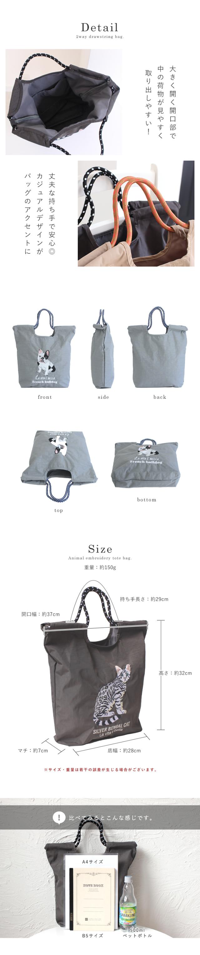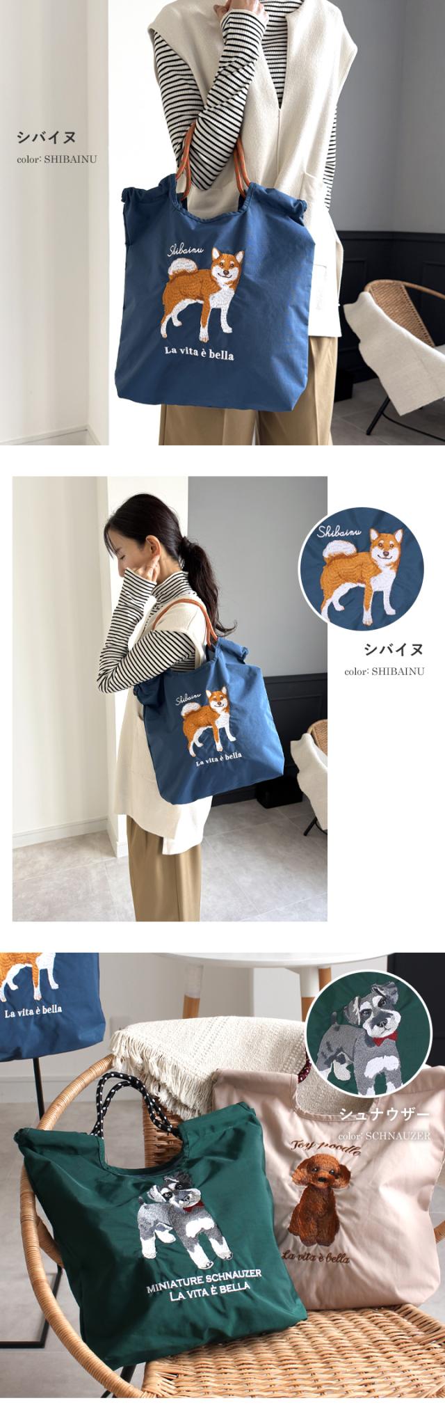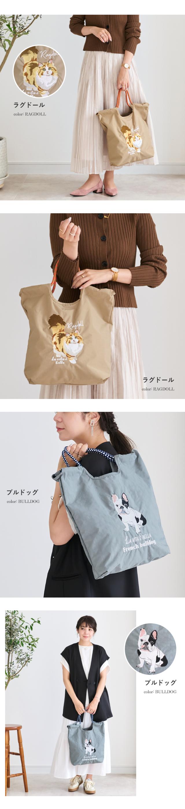 トートバッグ レディース 刺繍バッグ エコバッグ 刺しゅう ナイロン A4 肩掛け 手提げ 軽量 マチ広 ポケット付き 鞄 サブバッグ ショッピングバッグ かわいい おしゃれ 軽い 猫 ネコ ねこ 犬 イヌ いぬ スタイルオンバッグ 【yz-623-773】