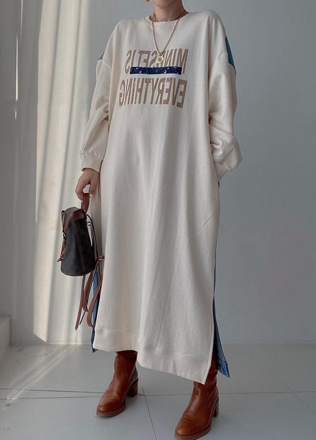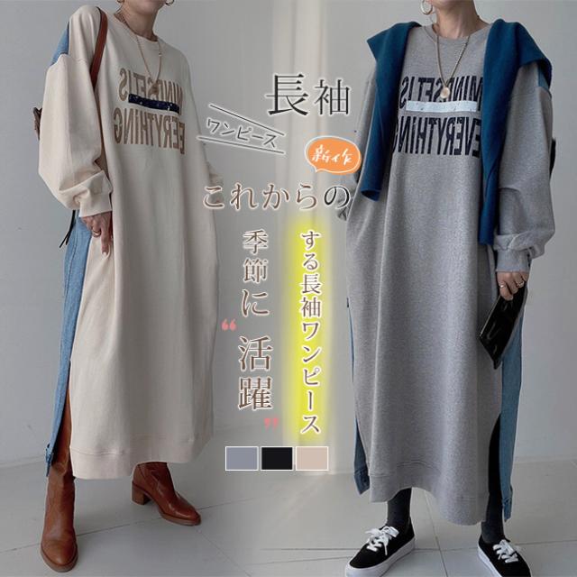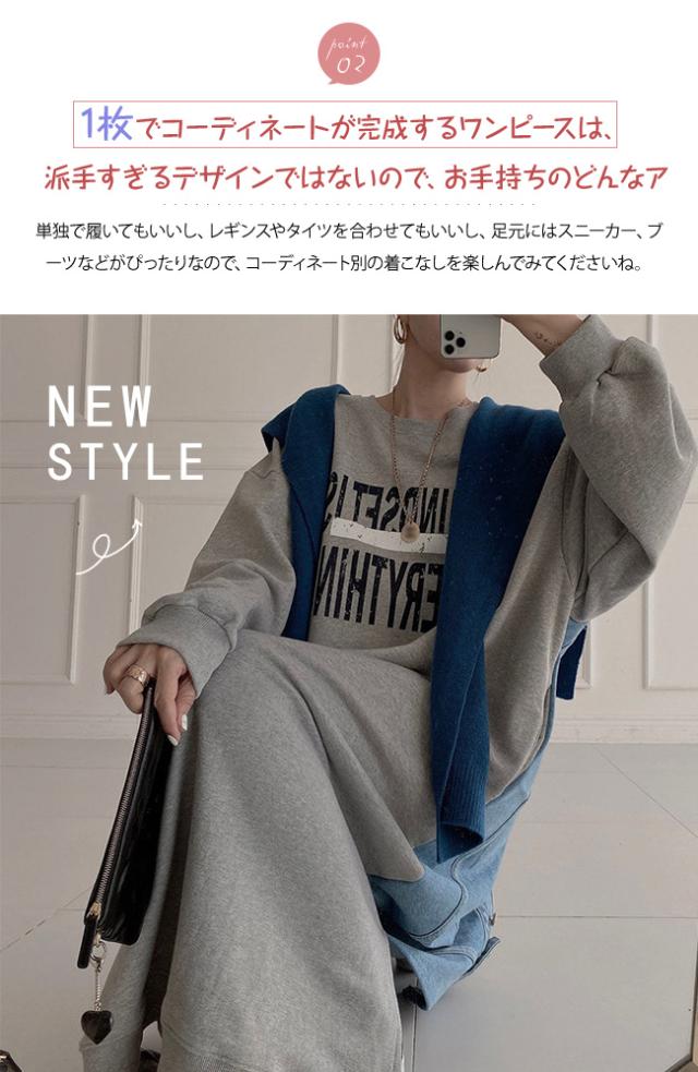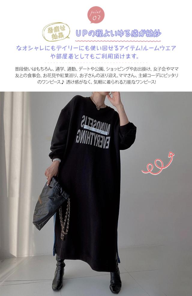 スウェットワンピース 大きめ クルーネック ゆったり 大きいサイズ ロングスウェットシャツドレス ゆったり 韓国風 大きいサイズ 着痩せ お洒落 春 夏 秋冬 大人 学生