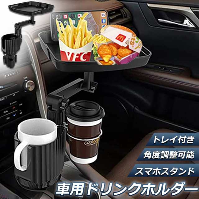 ドリンクホルダー トレイ車用 車載トレイ 車用トレイ スマホスタンド カーテーブル 2in1 差し込み式 多機能 360°回転 スマホ 小物入れ 車載 滑り止めシート 収納 車内 車用 回転 ダブルカップホルダー 内装用品 カー用品 車用品 アクセサリー