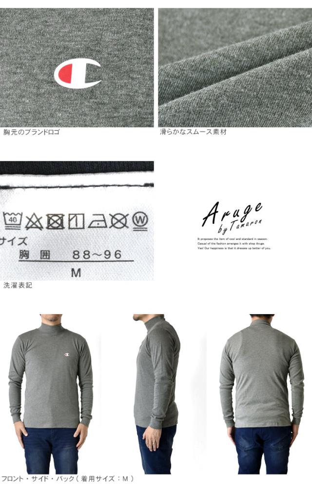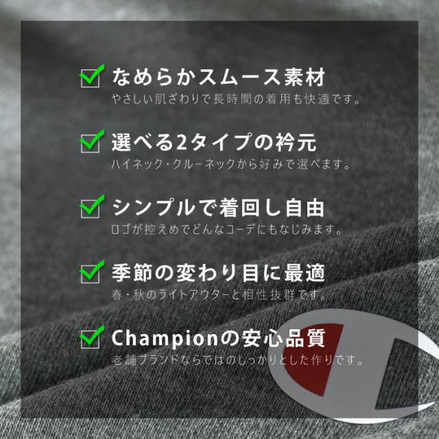 Champion チャンピオン 長袖Tシャツ メンズ ロンT スムース 選べる衿元 ハイネック クルーネック インナー 春 秋 冬【B4P】【送料無料】【メール便2】 冬新作