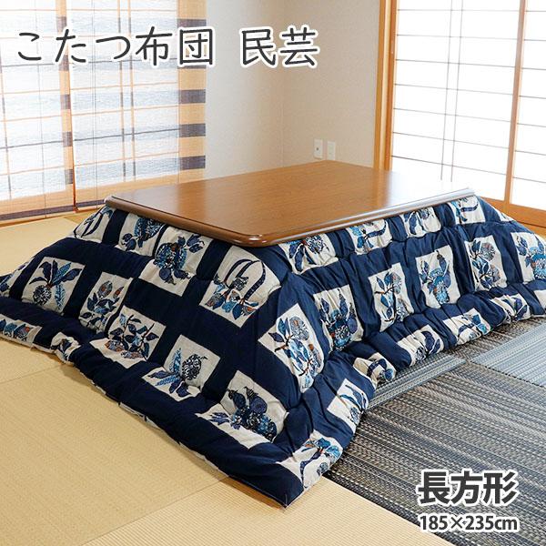 こたつ布団 長方形 彩色民芸 柄 約185×235cm(こたつ台 約70〜80×105〜115cm 用)綿100% おしゃれ 和風 和柄 洋室 和室 こたつ掛け布団 こたつ 布団 厚掛け ポイント消化
