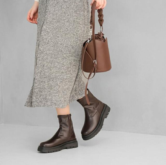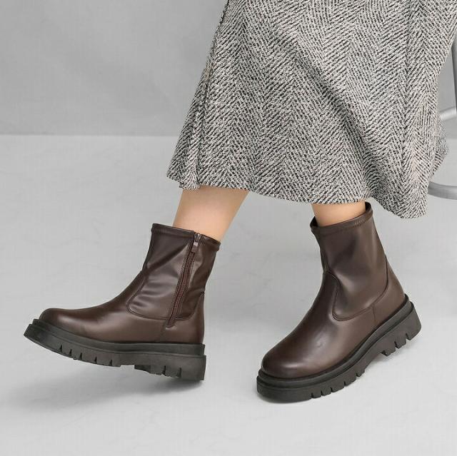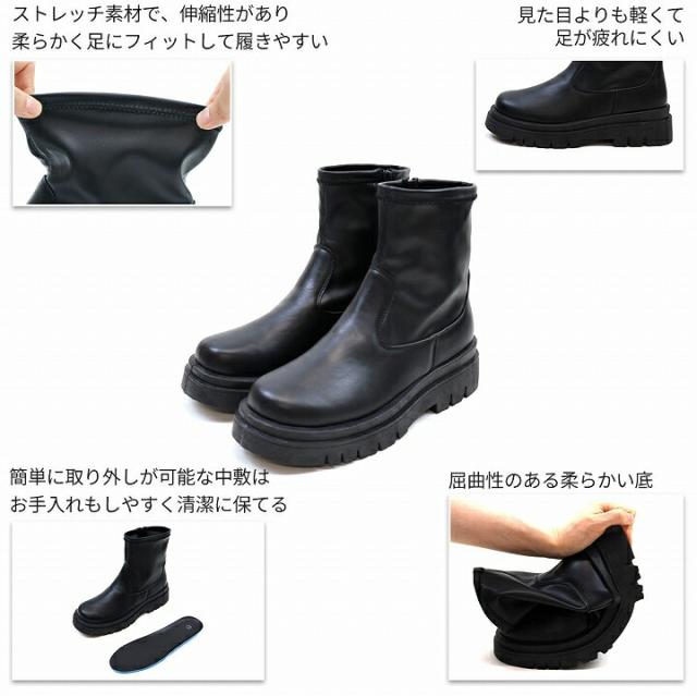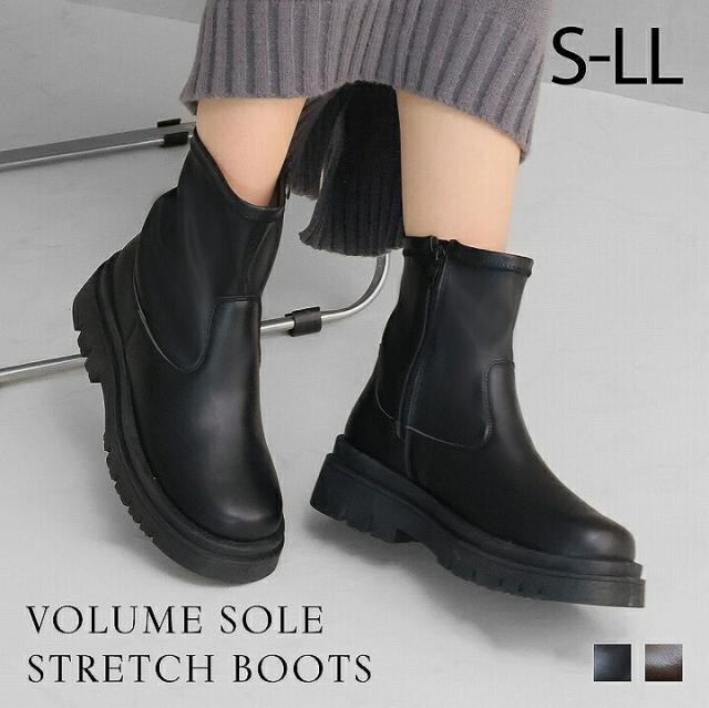 【全品10%OFFクーポン】 ブーツ レディース 秋新作 厚底ブーツ ショートブーツ ストレッチブーツ レディース 秋新作 トラックソール タンクソール ボリュームソール フラット V5180AW