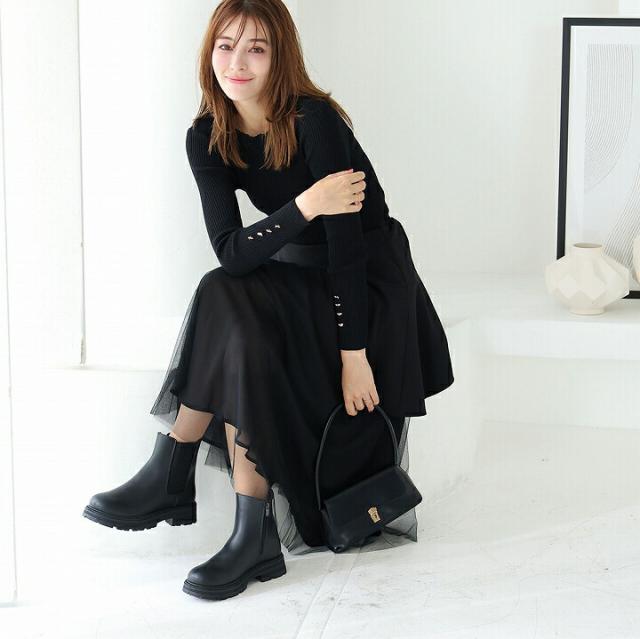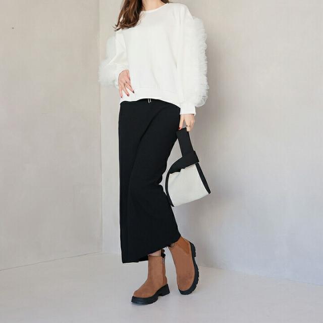 ・メンズライクなサイドゴアブーツは、絶妙な丈感でスカートにもパンツにもバランス良く合わせやすい。