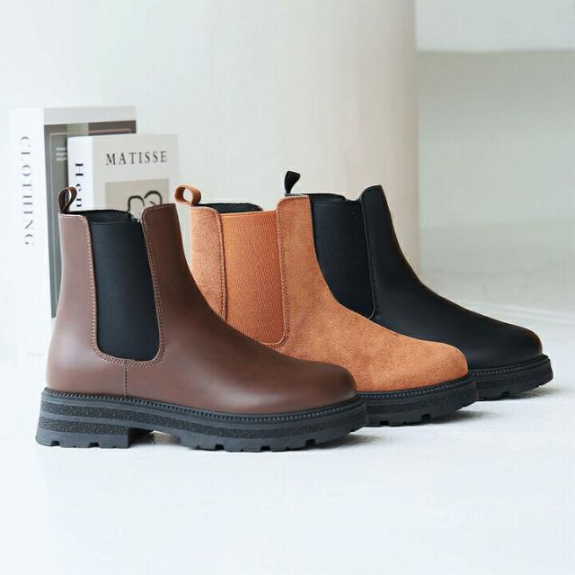 ベーシックなデザインに、程よくボリュームのあるトラックソールでトレンド感をプラスした今年らしいチェルシーブーツ