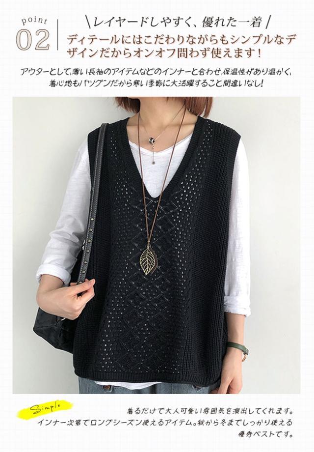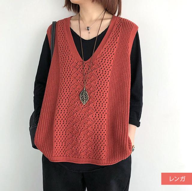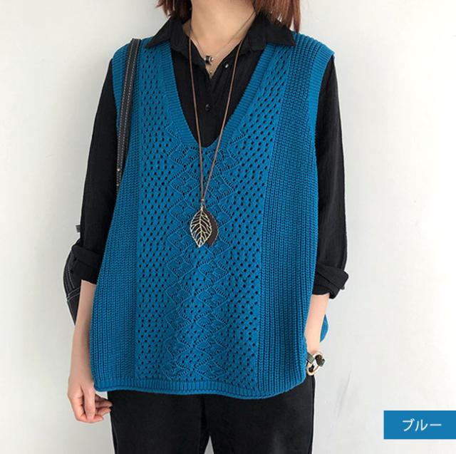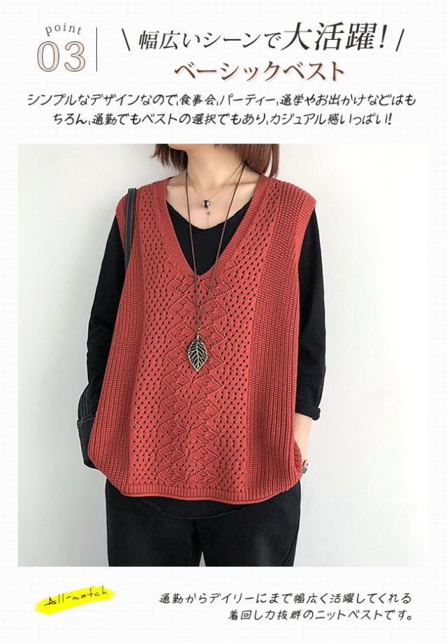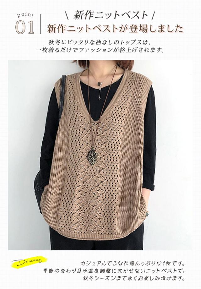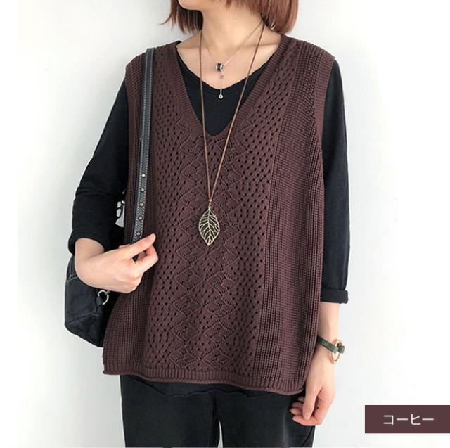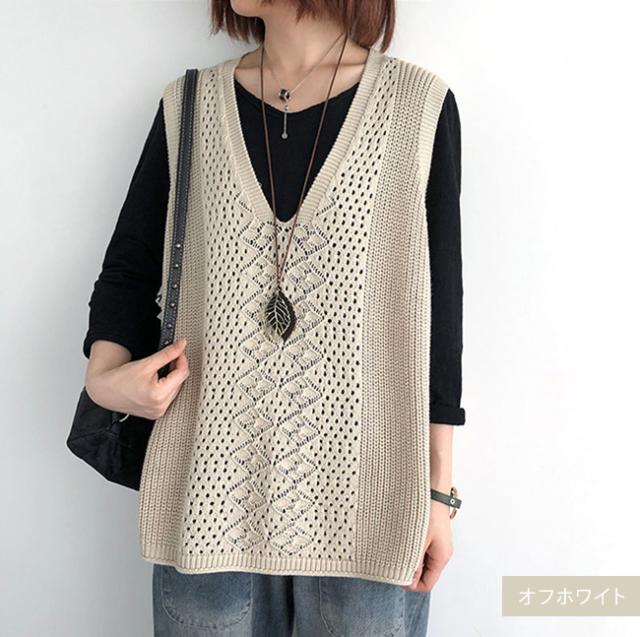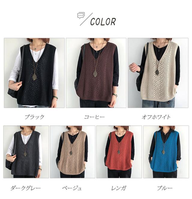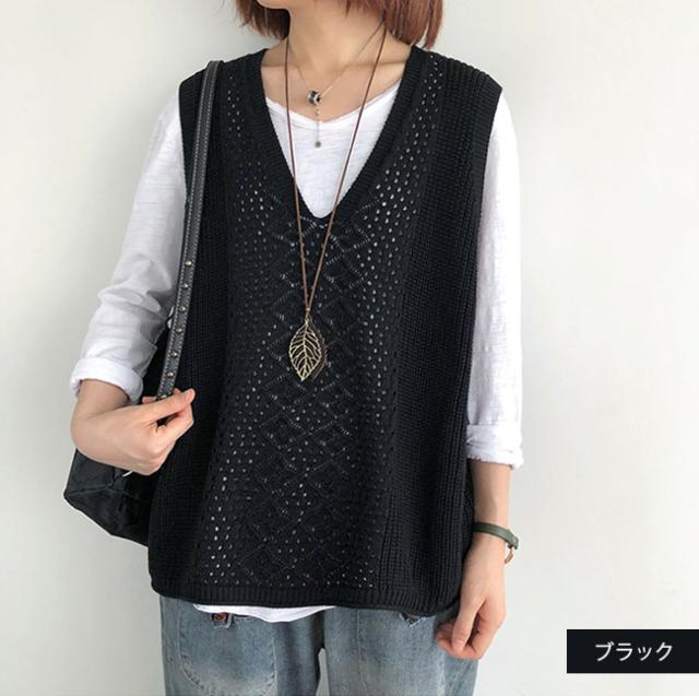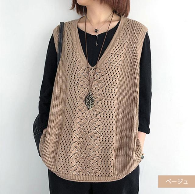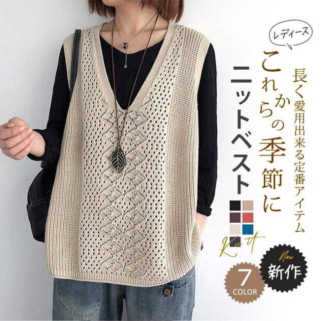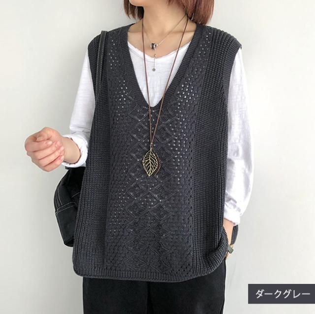 ニットベスト Vネック レディース ノースリーブ ベスト プルオーバー ケーブル編み 薄地 無地 ゆったり ミディアム丈 ストレッチ カジュアル レイヤード 重ね着 春 夏 秋 カジュアル ニットタンクトップ レイヤード