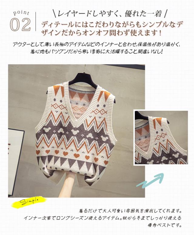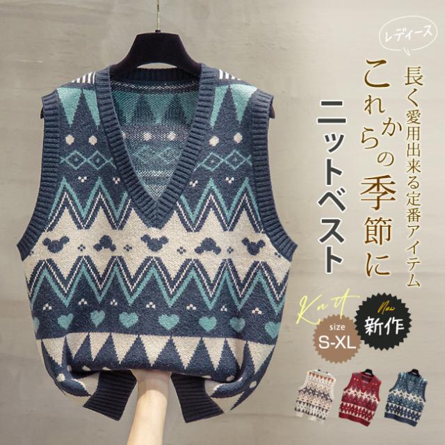 ニットベスト レディースベスト カットソー アウター vネック 柔らかい コーディガン 柄 可愛い ニットセーター ニット カーディガン ノースリーブ カジュアル 春 秋 冬 防寒 コーデ 通勤 通学