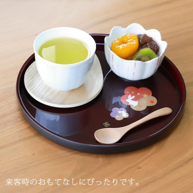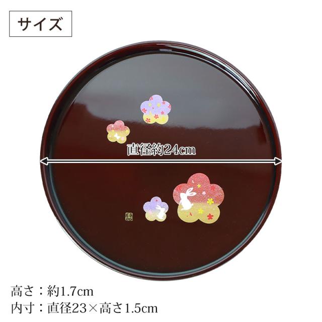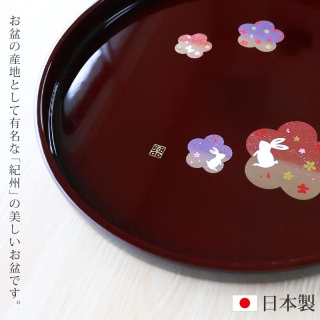 丸盆 溜 宴うさぎ トレー 24cm 8寸 紀州塗り お盆 来客用 おもてなし 日本製 おしゃれ うさぎ 梅 桜 さくら 紀州漆器 国産 おぼん トレイ 円形 丸型 サークル お祝い
