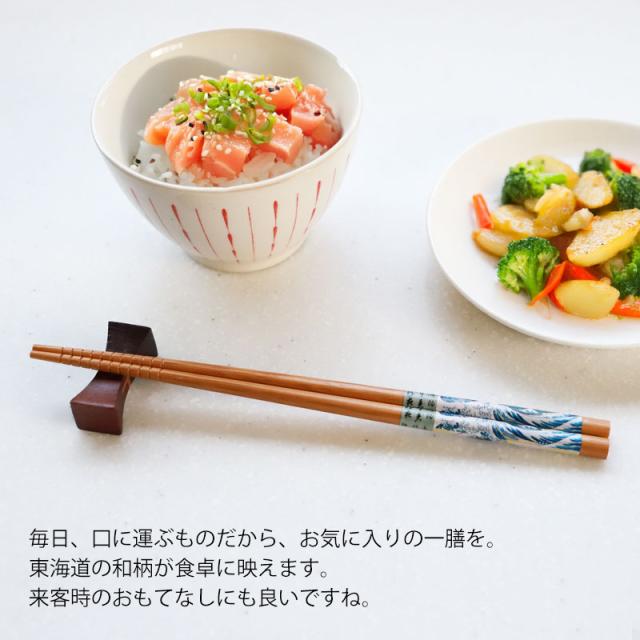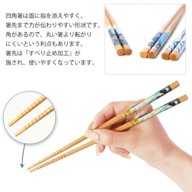 毎日、口に運ぶものだから、お気に入りの一膳を。 様々な東海道が描かれています。 お気に入りの箸で毎日の食事をこだわりたい。 普段使いの生活箸としておすすめの上質なお箸です。 手に持てば指先にやさしく、口に運べば口当たりやわらかく。 自然のぬくもりを感じさせる木製品は、長く使うほどに手になじみ、つややかな風合いが加わります。 四角箸は面に指を添えやすく、箸先まで力が伝わりやすい形状です。 角があるので、丸い箸より転がりにくいという利点もあります。 箸先は「すべり止め加工」が施され、使いやすくなっています。 5膳入りはお客様へのおもてなしにもおすすめです。 また、お箸は毎日使う物ですのでご贈答にも適しています。 かさばらないのでちょっとしたお返しにも喜ばれますね。 ギフトボックス入りで結婚祝いなどに最適です。 日本文化のお箸は、海外の方へのプレゼント、お土産にも喜ばれます。 |