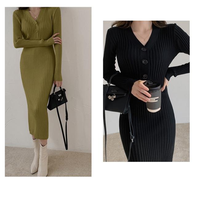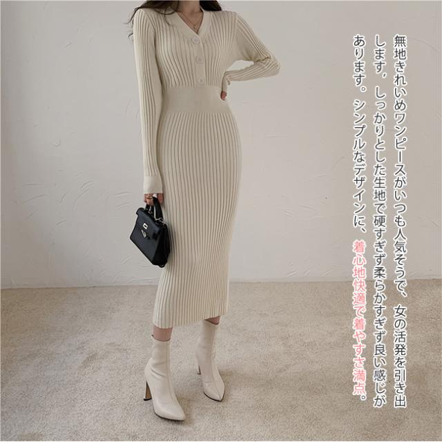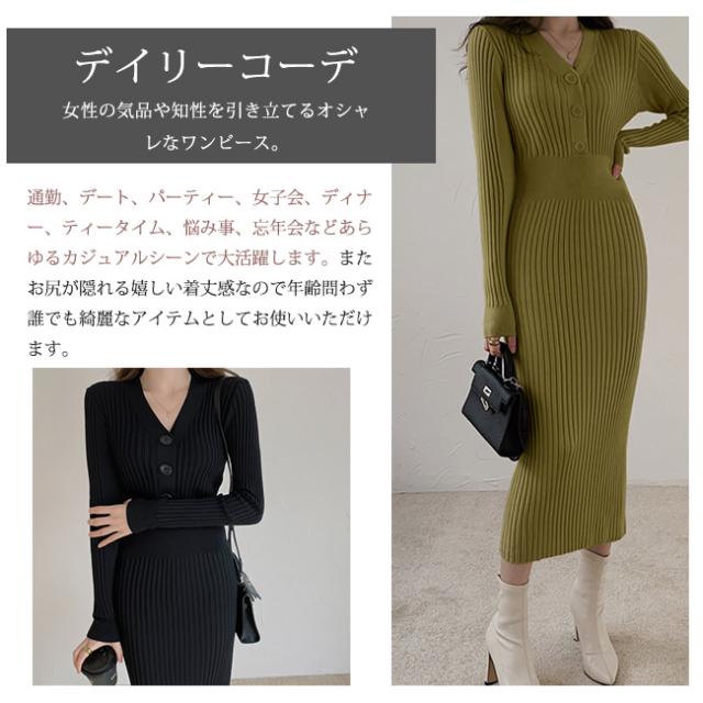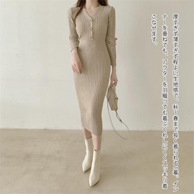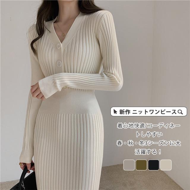 新作 ニットワンピース レディース ニット タイトワンピース ロング スカート 長袖 胸元 セクシー Vネック かわいい オシャレ オフショルダー ボディコン きれいめ