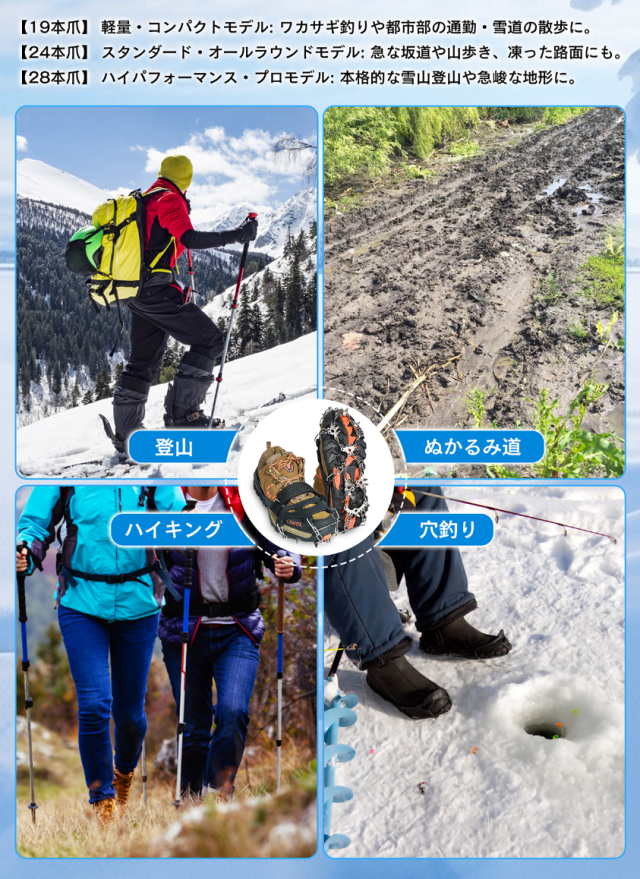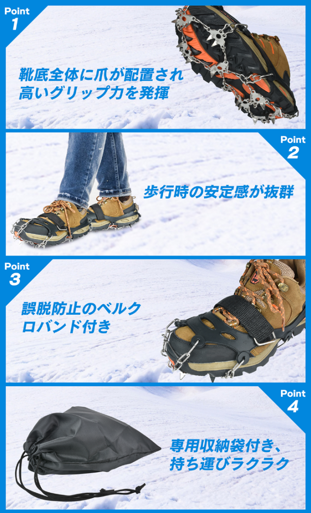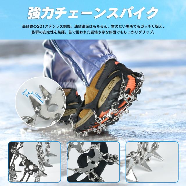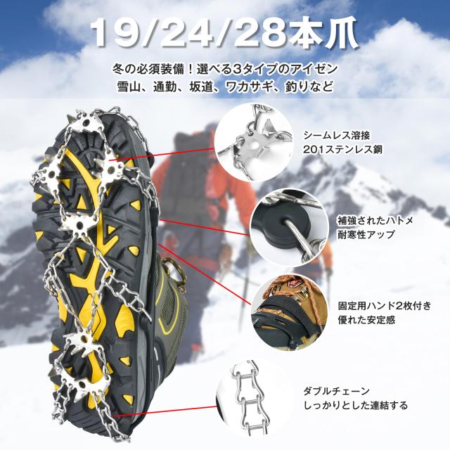 【送料無料】アイゼン スノースパイク 19本爪 チェーンアイゼン 靴底 滑り止め 転倒防止 簡単装着 雪道 登山 贈り物