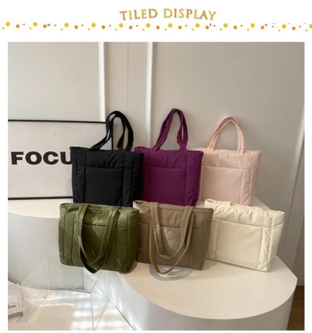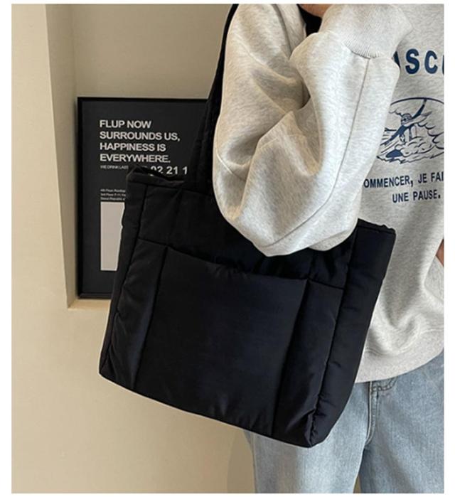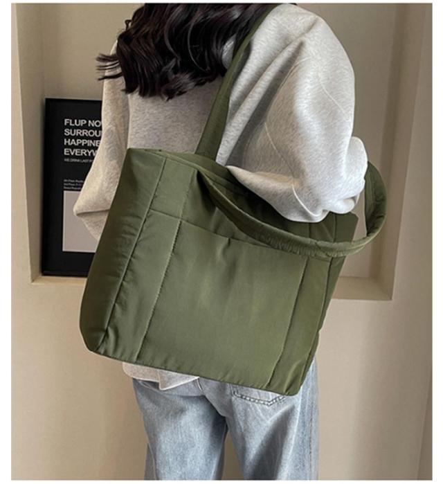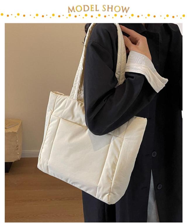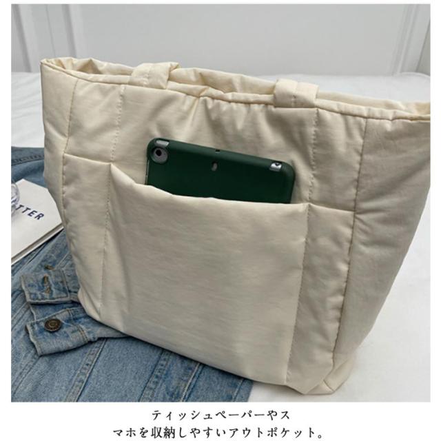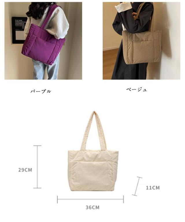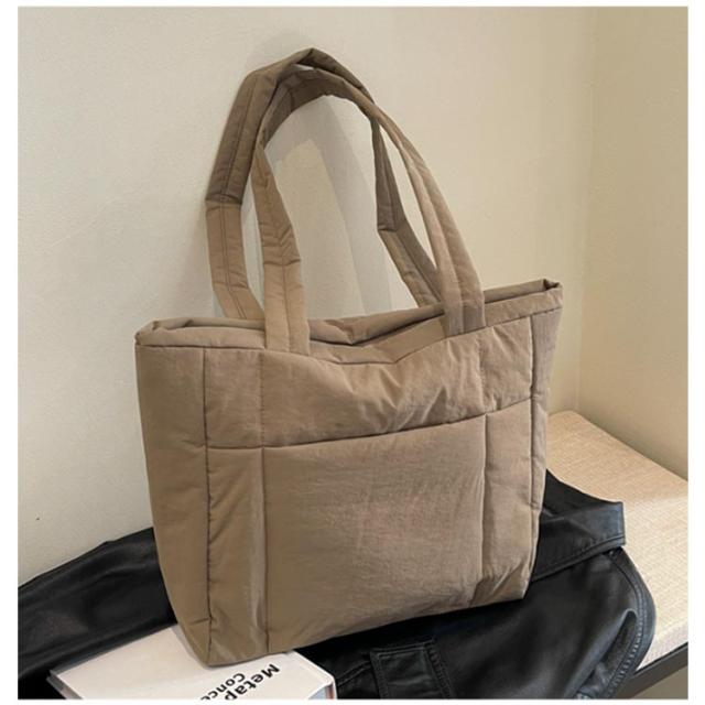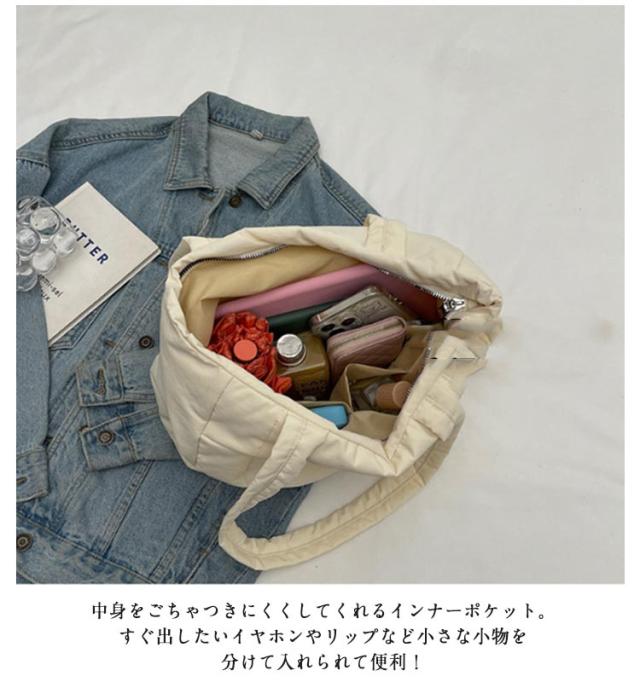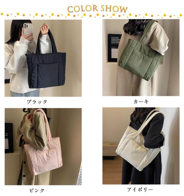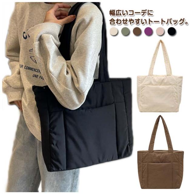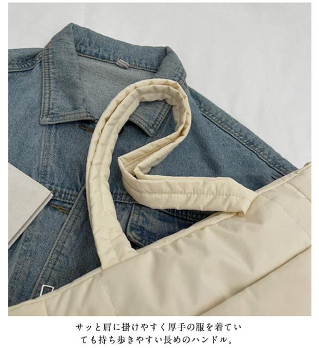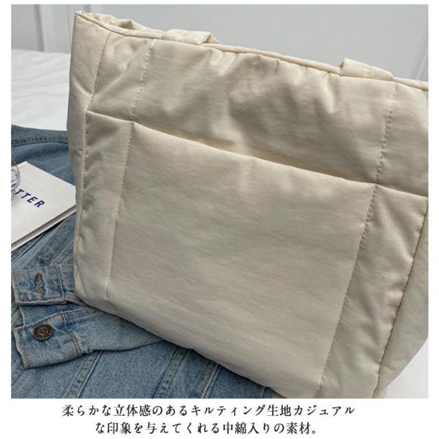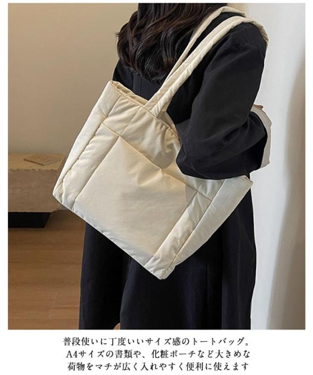 キルティング バッグ 大きめ A4 大容量 トートバッグ ショルダー 肩掛け 布地 中綿入り キャンパス ショルダーバッグ 軽量 軽い ファスナー マザーズバッグ トート ポケット多い 通学 通勤 旅行 無地 シンプル カジュアル おしゃれ キルティングトートバッグ