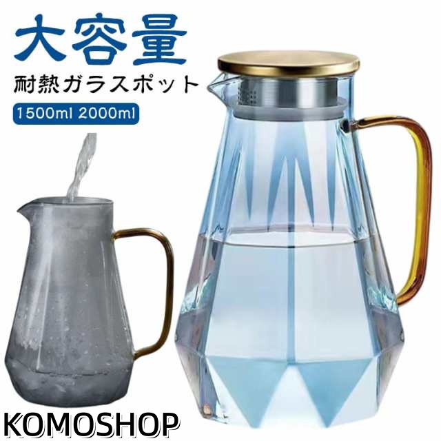 | 【耐熱ガラスポット】【1500ml 2000ml】【大容量】 耐熱のホウケイ酸ガラスで作られて、直火可能なガラスポットです。 麦茶、紅茶、ジュース、コーヒー、ミルクなどの飲み物を淹れたい時にご気楽にお使えいただけます。 ダイヤモンドのアイデアでデザインされており、エレガントで美しく、お部屋の飾りとして、また食事の際の視覚的な楽しみにもなります。 耐熱ガラスので、温かい飲み物にも冷たい飲み物にも使える耐熱ガラス製のピッチャーです ガラス製のハンドルはしっかりと握ることができます。 ボトルの口径が大きく、手が直接差し込めて清潔できます。 耐熱ガラス製なので丈夫で長持ち! 熱いものも、冷たいものも両方使えるので、年中愛用していただけます。 ご注意: 加熱する場合は、強火を使わなでください。 空焚きは絶対にしないでください! ※IH使用不可 | |