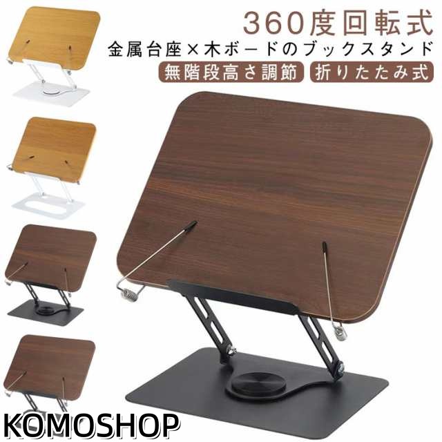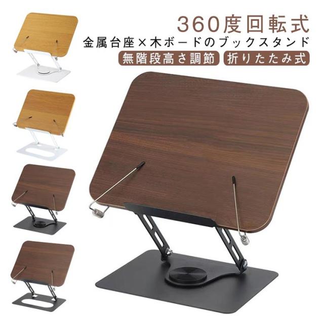 木製 ブックスタンド 本立て 卓上 書見台 読書台 360度回転式 無階段高さ調節 折りたたみ式 アイロン台座 安定性 読書スタンド 譜面台 レシピスタンド ブックホルダー ブックストッパー オフィス キッチン 北欧 おしゃれ 子ども 学習用 勉強 楽譜 スタンド 傾斜台 木目