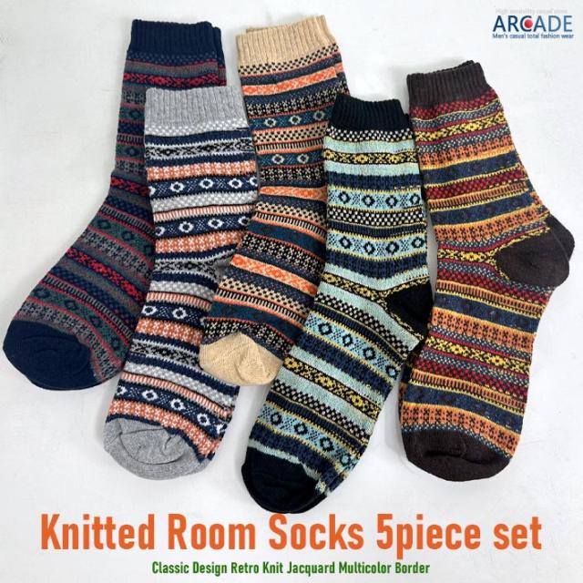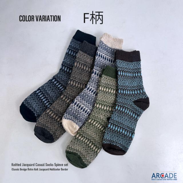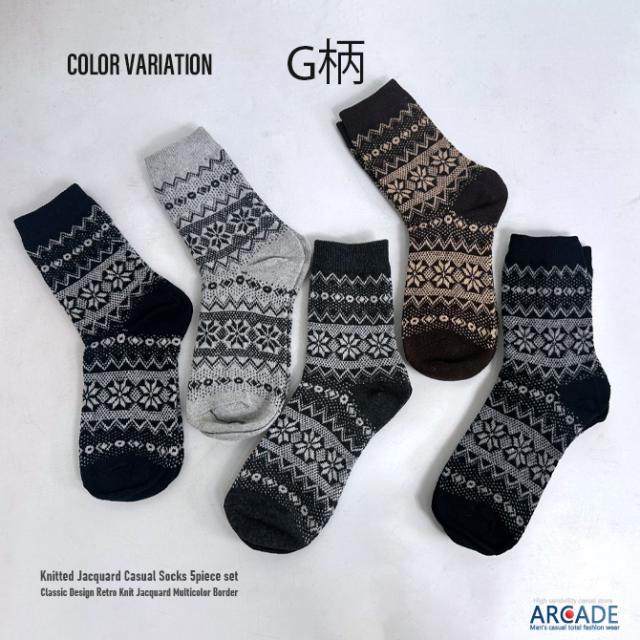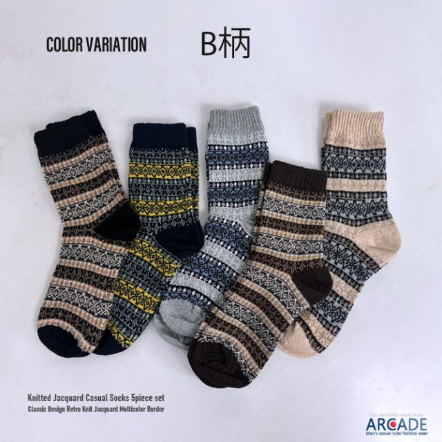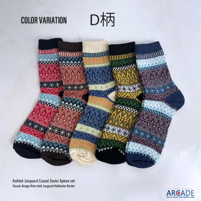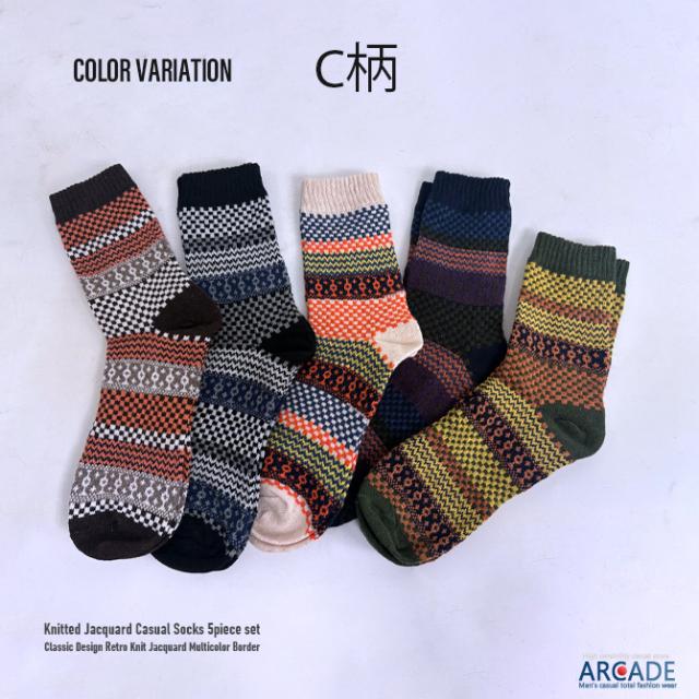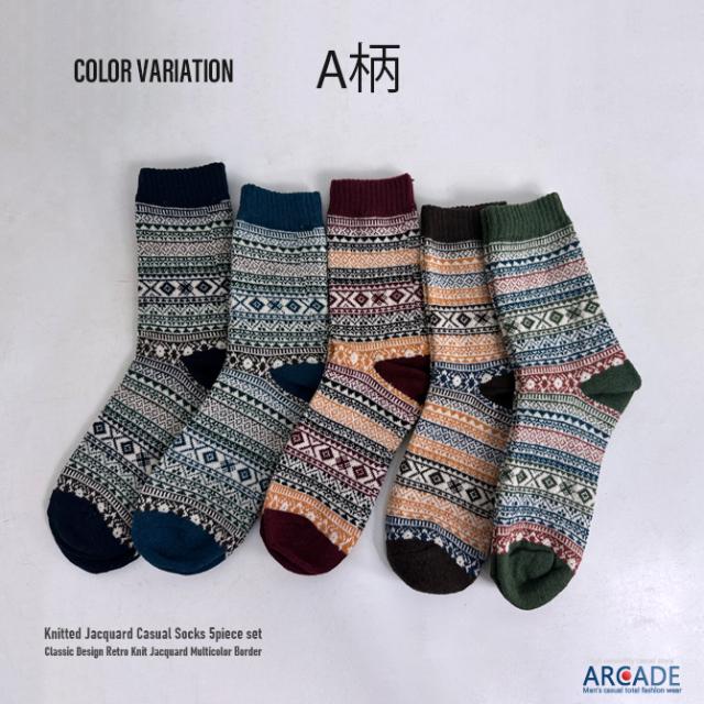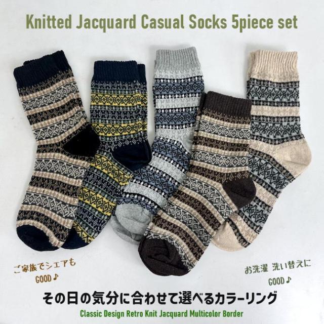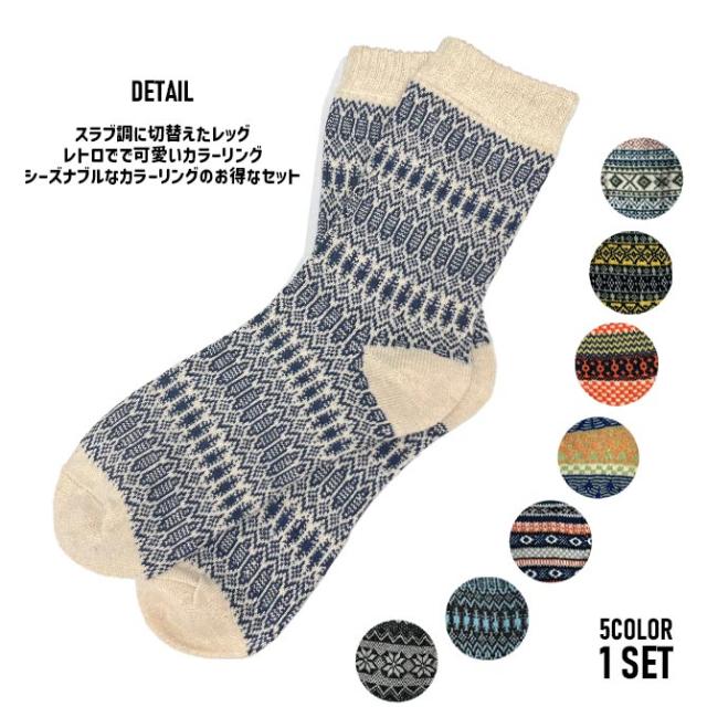 お得な5点 バリューセット 肉厚 冬柄 靴下5足セット ロークルーソックス ニットソックス カジュアルソックス