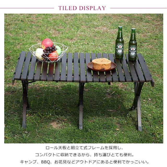 アウトドアテーブル ローテーブル 木製 キャンプ テーブル 120cm 90cm コンパクト 収納 折りたたみ ウッドロールテーブル 大きいサイズ レジャー ピクニック バーベキュー お花見 作業台