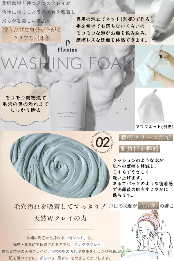 正規販売店 PLAMINE プラミネ ウォッシングフォーム 120g Wクレイ 洗顔料 洗顔フォーム もこもこ 濃密泡 敏感肌 乾燥肌 日本製 送料無料