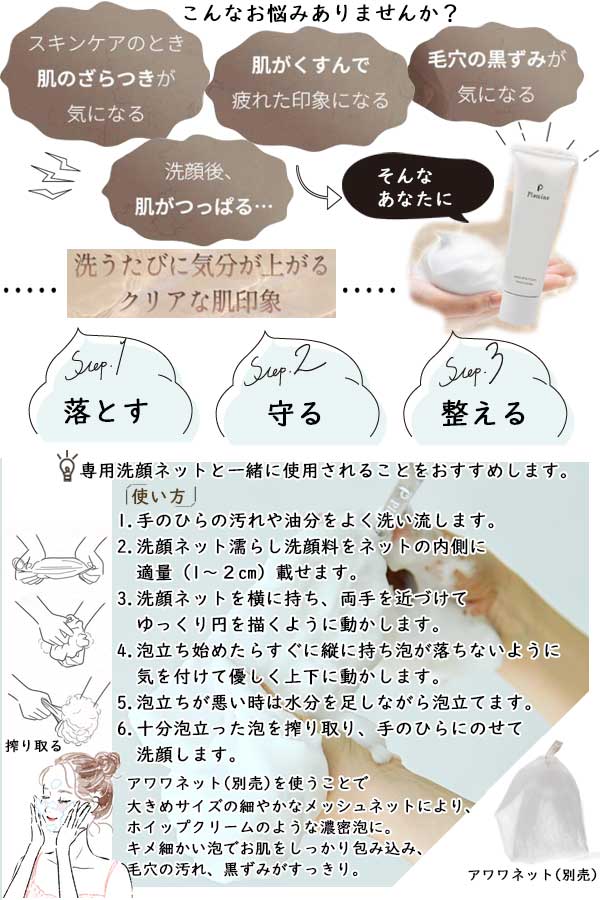 専用洗顔ネットと一緒に使用されることをおすすめします。