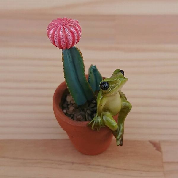 オブジェ 置き物 インテリア雑貨 家具 インテリア サボテンとカエル サボテン カエル 蛙のオーナメント 蛙 オーナメント 仙人掌 縁起物 【送料無料】