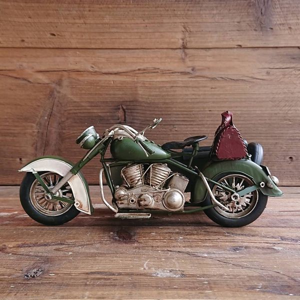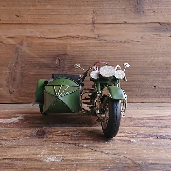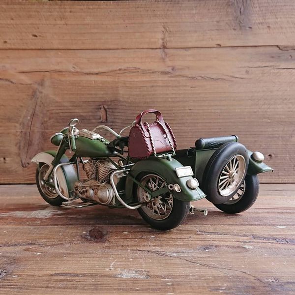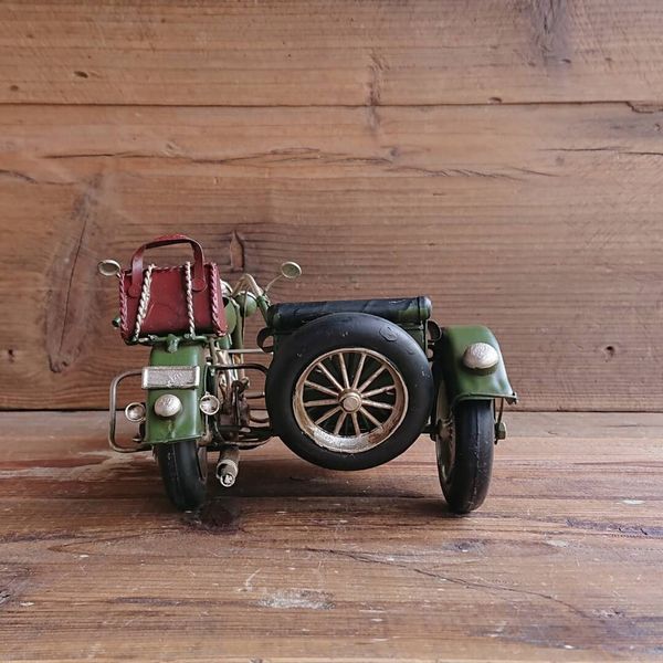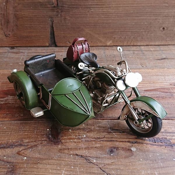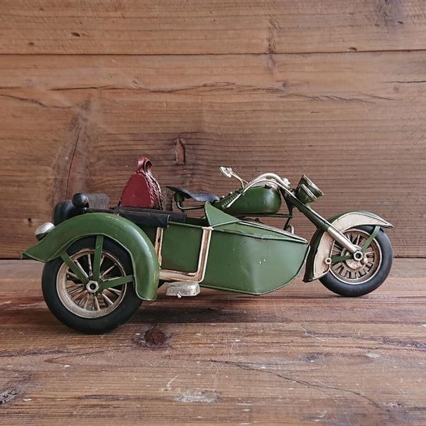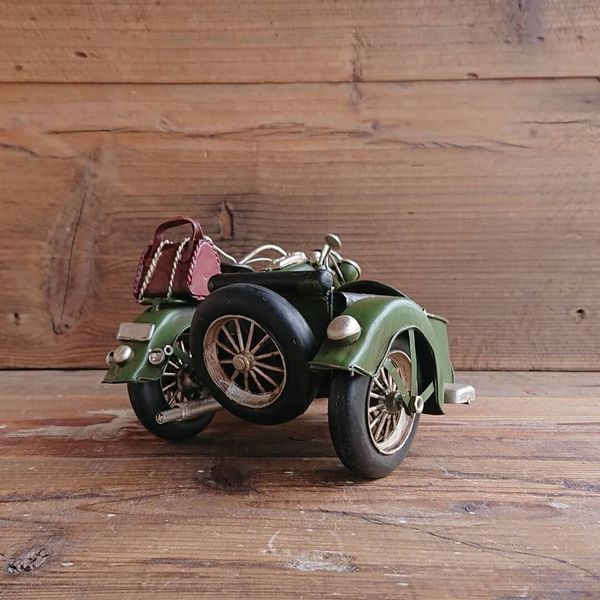 オブジェ 置き物 インテリア雑貨 家具 インテリア レトロな雰囲気 ブリキ細工 サイドカー 緑 アンティークの風合い かもしだす一品 【送料無料】