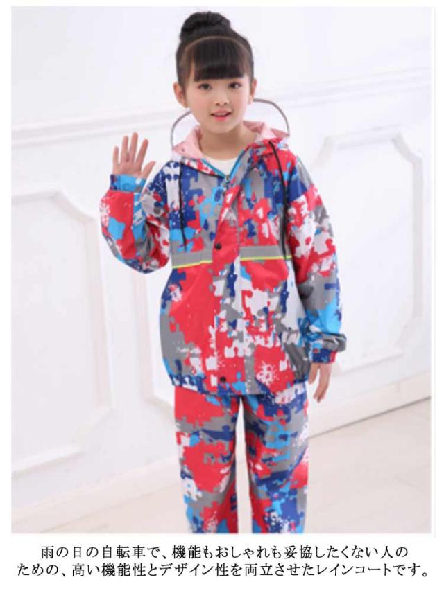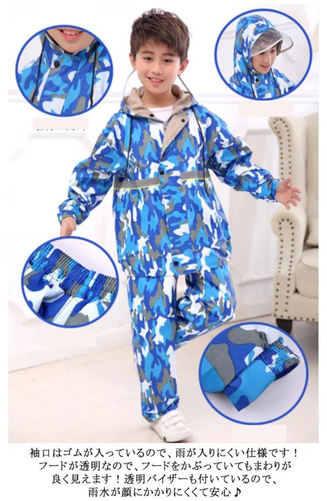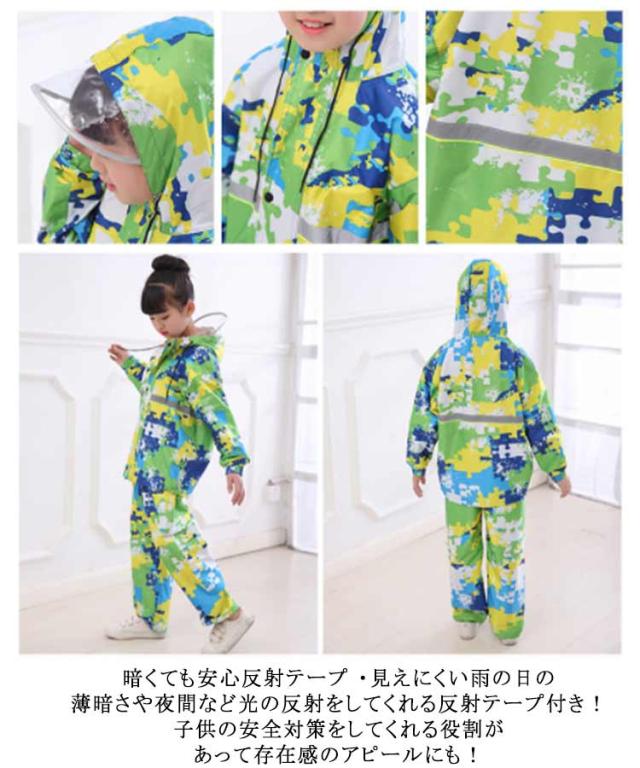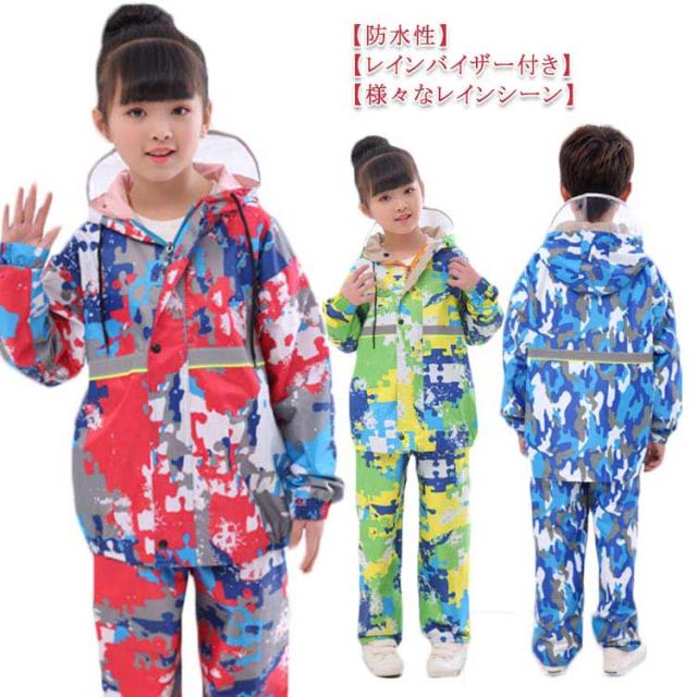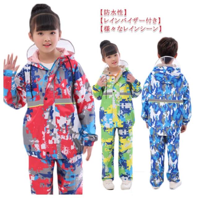レインコート キッズ 女の子 男の子 子供用 上下セット セットアップ 2点セット 切り替えレインスーツ 雨具 レイングッズ レインウェア ツバあり 反射テープ付き アウトドア用品 自転車 通学 ジュニア 100 110 120 130 140 150