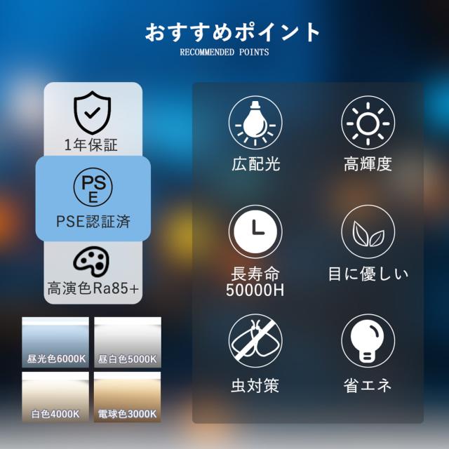 【省エネ・長寿命・高演色性】:通常LED技術を採用しており、エネルギー効率が高く、消費電力が少ないです。