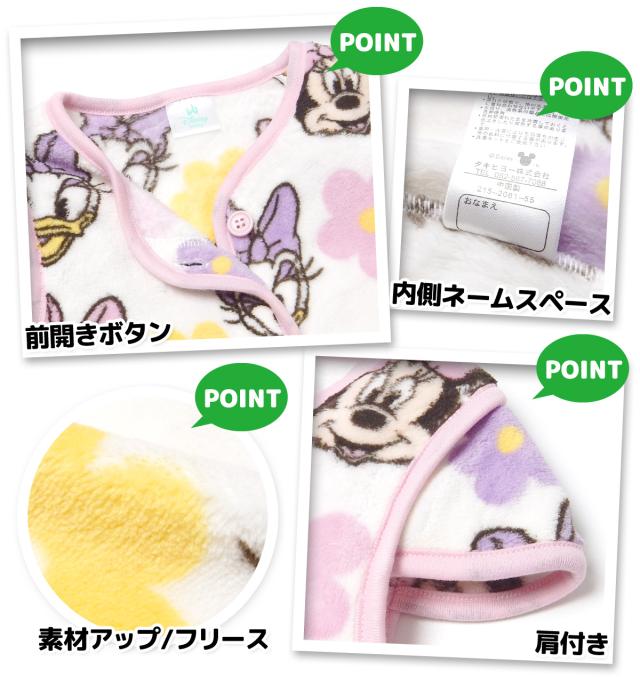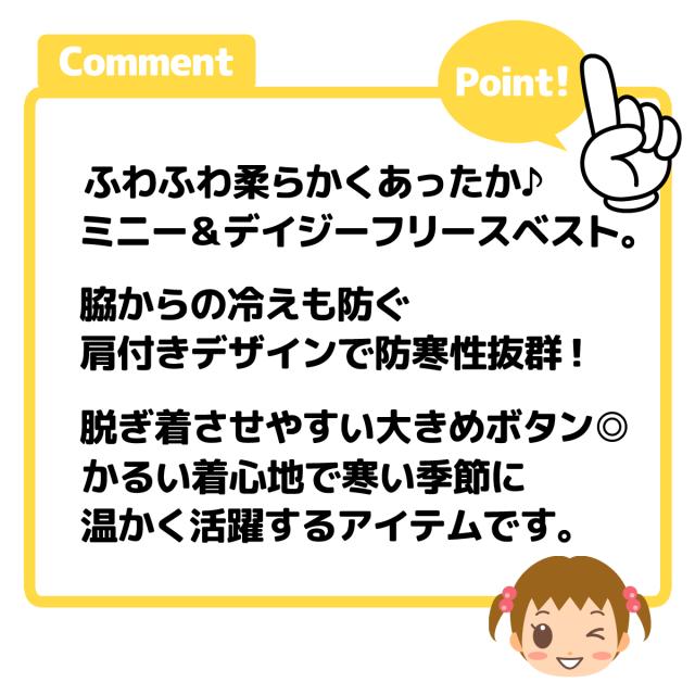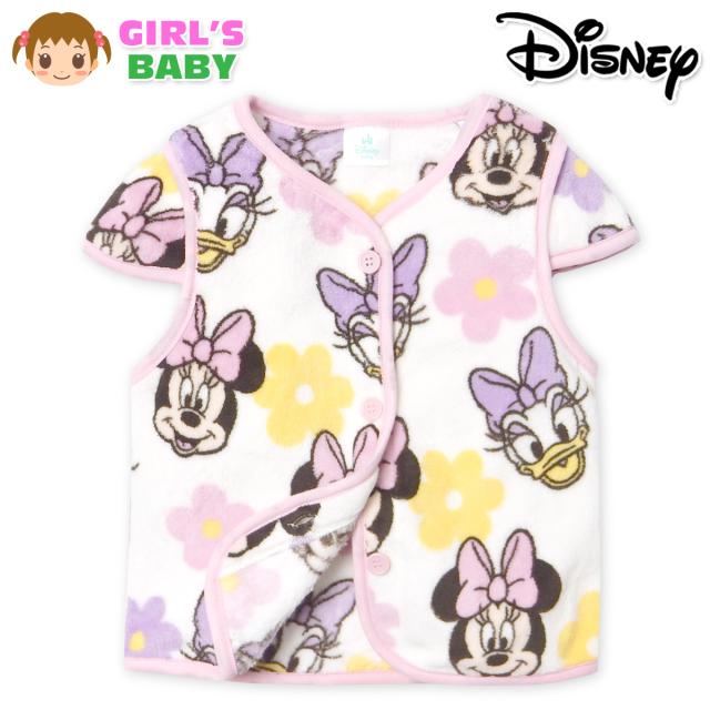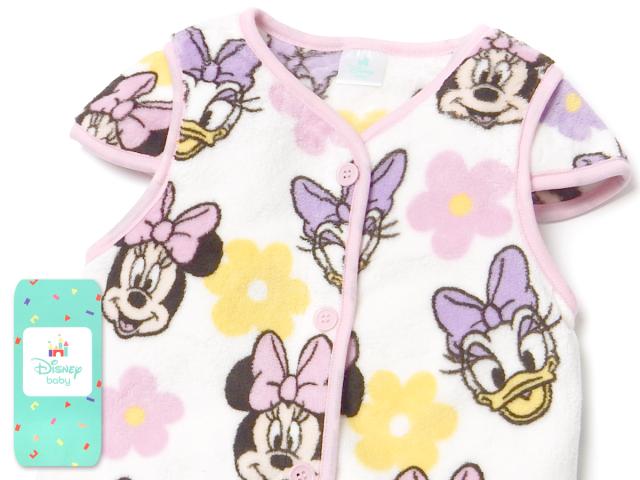 【送料無料】女児 ベビー フリース ベスト スリーパー Disney ミニー&デイジー 肩付き あったか素材 保温性 前開きボタン パジャマ 80cm 90cm 95cm iw-1390a-pk【メール便対応】