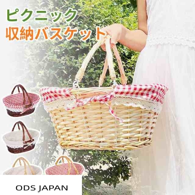 ピクニックバスケット ピクニック バスケット カゴ収納 プラスチック 持ち手 ランチバスケット 2ハンドル 海水浴 キャンプ アウトドア【ピクニックに可愛い】
