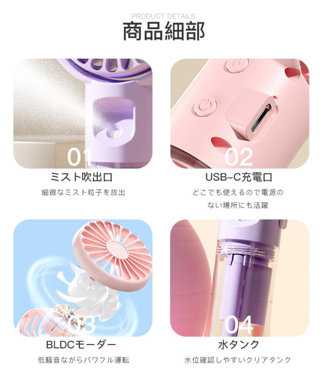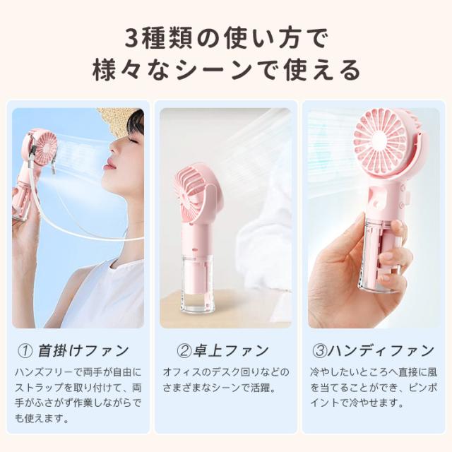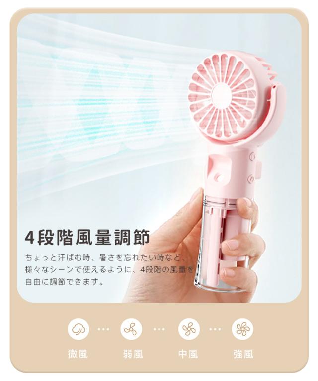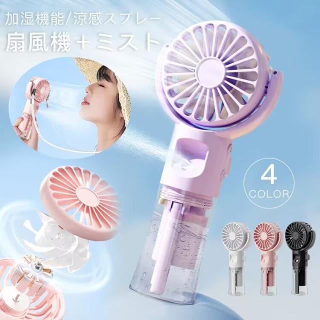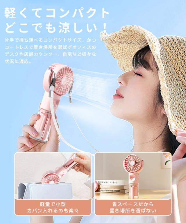 ハンディ 扇風機 ミスト付き 携帯扇風機 卓上扇風機 ミスト機能 ハンディファン 夏 扇風機+ミスト 乾燥肌対策 熱中症対策 USB充電式 2WAY 携帯扇風機 加湿 4段階風量 軽量 静音 体温調節 かわいい 卓上使用可能 運動 散歩 屋外活動 通勤 仕事中 アウトドア