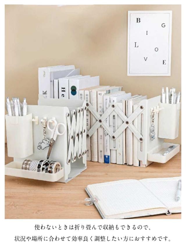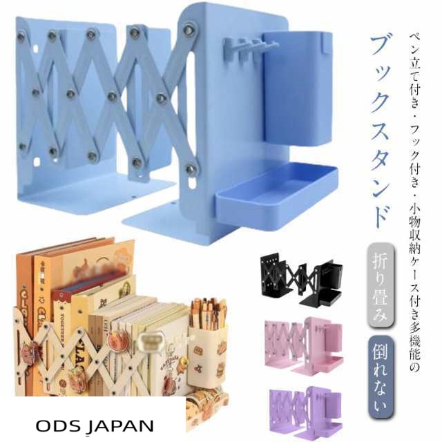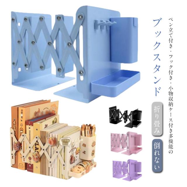 ブックスタンド 伸縮 折りたたみ ブックスタンド 本立て ペン立て付き スチール ブックエンド フック付き おしゃれ 伸縮自在 教科書スタンド 本立て 卓上収納 倒れない スタンド 折り畳み 丈夫 ぶっくすたんど 金属 送料無料