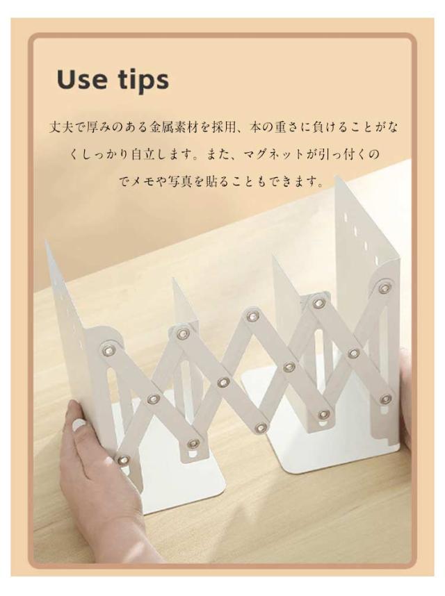 | ペン立て付き・フック付き・小物収納ケース付き多機能のブックスタンド 本・雑誌・CD・新聞などを分類収納するのに便利な仕切りがあり、取り出しも簡単です。 丈夫で厚みのある金属素材を採用、本の重さに負けることがなくしっかり自立します。また、マグネットが引っ付くのでメモや写真を貼ることもできます。バッククロス設計ですので本が後方に落ちにくく、いろんな場所でお使いいただけます。 シンプルなデザインになっているので、オフィスでのご使用はもちろん、ご自宅のリビングや部屋のデスクに置いても合わせやすい色合いとなっています。 使わないときは折り畳んで収納もできるので、状況や場所に合わせて効率良く調整したい方におすすめです。 | |