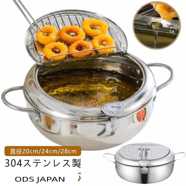 揚げ物鍋 20cm 24cm 両手鍋 揚げ鍋 温度計付き 小型 調理器具 304 小さい 天ぷら鍋 丸型 アミ付き 揚げ物 製 天ぷら 天ぷら鍋 ステンレス ガス火対応 IH対応 フライヤー なべ お鍋 天ぷら用鍋 蓋付き 温度計 天婦羅鍋 コンパクト フライ 油はね防止 おしゃれ シンプル