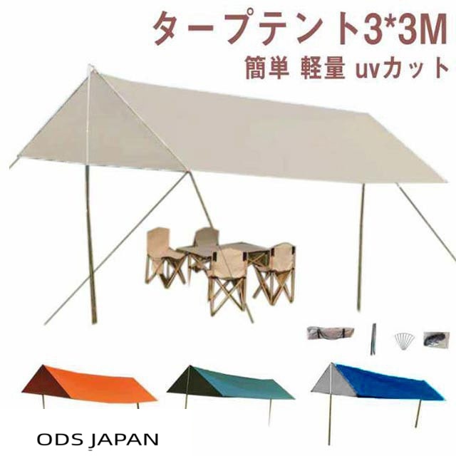 ヘキサタープテント 3*3m ポール2本付き タープテント ヘキサタープ タープ テント ヘキサ 簡単 軽量 uvカット uv加工 防水 キャンプ アウトドア レジャー バーベキュー 海 登山 ピクニック