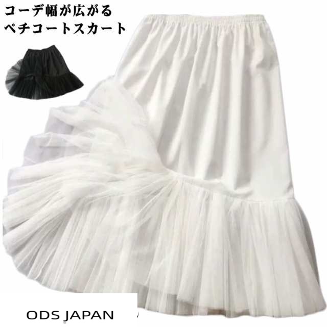 | コーデ幅が広がるペチコートスカート ウエストはゴム仕様 裾の部分はふんわりの柔らかいチュール 吸汗速乾性のあるなめらかな肌ざわりの素材 | |