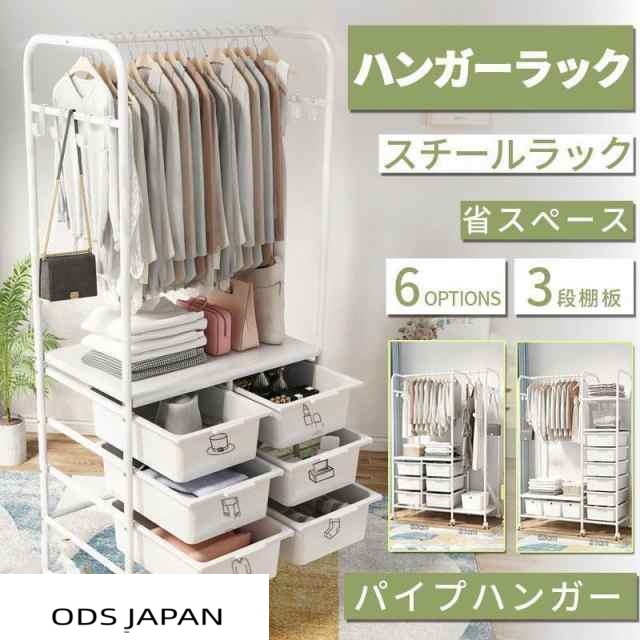 ハンガーラック スリム 頑丈 多段 室内物干し 洗濯物落ち防止対策 洋服掛けラック 引き出し キャスター付き パイプ 収納ラック ベビー 省スペース 子供服