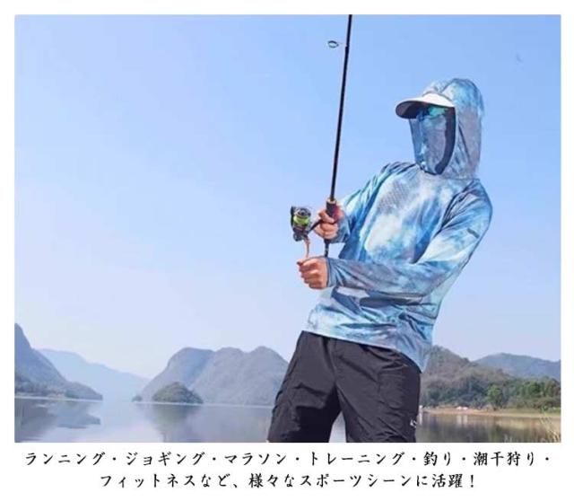 | 紫外線が強く真夏には欠かせないUV対策パーカーです。 柔らかく滑らかで、ひんやりと快適な生地を使用。 フード付きなので、お肌に有害な紫外線を98%以上カット! 生地の伸縮性もよく、ストレスなく着用できます。 フェイスマスクが夏の強い日差しや紫外線から肌を守ります。 薄手で軽いのでバッグに入れての持ち運びにも便利です。 ランニング・ジョギング・マラソン・トレーニング・釣り・潮干狩り・フィットネスなど、様々なスポーツシーンに活躍! | |
